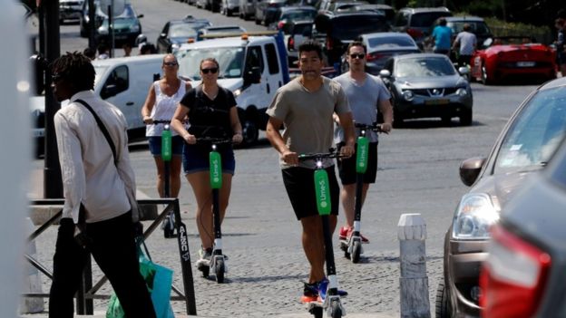 Image caption Uber recently invested in electric scooter and bike hire company Lime