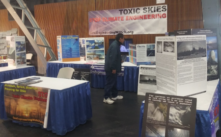 This week’s GeoengineeringWatch.org outreach booth is at the Sonoma County Fairgrounds, Santa Rosa, California, and is shown below. My most sincere and continuing gratitude to the Gem Faire exhibition organizers for facilitating and setting up this very effective booth in every week’s Gem Faire location. The schedule for upcoming Gem Faire events is HERE. A geoengineeringwatch.org booth will be at all events, thanks to the steadfast support of Gem Faire.