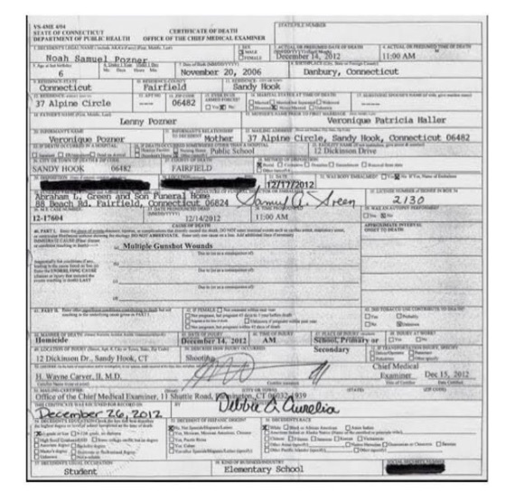 - The second edition of “Nobody Died at Sandy Hook” accuses Plaintiff of issuing and/or possessing a forged copy of N.P.’s death certificate. In particular, page 183 of Nobody Died at Sandy Hook states: “Noah Pozner’s death certificate is a fake, which we have proven on a dozen or more grounds.” At page 232 the book states, [Mr. Pozner] sent her a death certificate, which turned out to be a fabrication.” At page 242, the boostates, “As many Sandy Hook researchers are aware, the very document Pozner circulated in 2014, with its consistent tones, fonts, and clear digital manipulation, was clearly a forgery.”