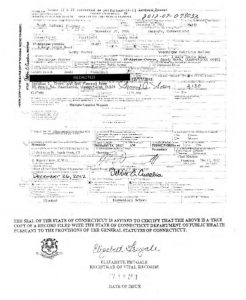 The claim that the death certificate attached to the Complaint “does not differ in any material respect from the one released publicly by Plaintiff”, as should be apparent already, blatantly falsifies the situation we confront, because the attached certificate has both the State certification as a true copy and the certification of the Town Registrar, in the absence of which it qualifies as illegal and a fabrication. By Connecticut law, not even a parent can obtain an uncertified copy of a death certificate. It’s that blatant.