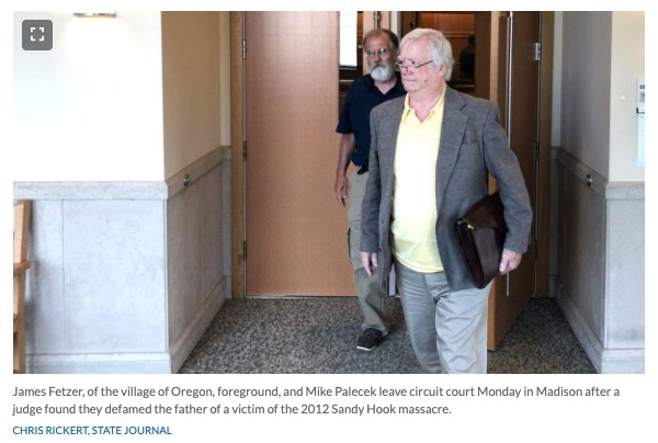 As the Wisconsin State Journal reports, “A Dane County judge on Monday found that a longtime conspiracy theorist living in the village of Oregon, along with his co-defendant, defamed [Leonard Pozner] the father of a victim of the Sandy Hook massacre and allowed a trial for damages against the men to move ahead” (“Judge Rules Against Sandy Hook Denier” (17 June 2019).