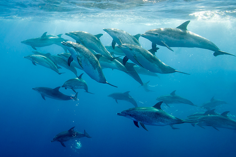 We are going on four boat trips together where we will encounter the dolphins in the wild. Our dolphin-trips will last 3-4 hours and allow each swimmer to enter the water at least 2-3 times. We aim to offer a truly natural experience and sometimes it is possible to swim with more than one species at the same time. The wild dolphins are neither attracted with tricks, nor fed or chased. That said, they do come close to the swimmers because they are curious animals, and the success rate of our swim with dolphins trips is greater than 97!