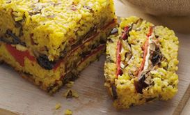 • A delicious mix of cooked vegetables such as eggplant, tomatoes, onion, celery and bell peppers, seasoned with capers from Lampedusa Island and pine nuts with a side of brown rice.
